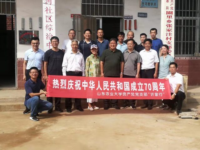 9月12日,资产管理处党支部前往临沂沂水县参观学习,庆祝中华人民共和国成立70周年。党委常委、副校长吴衍涛同志以普通党员的身份参加支部活动,党委组织部副处级组织员蔡德伟同志、山东农业大学勘察设计研究院院长刘经强同志受邀参加。