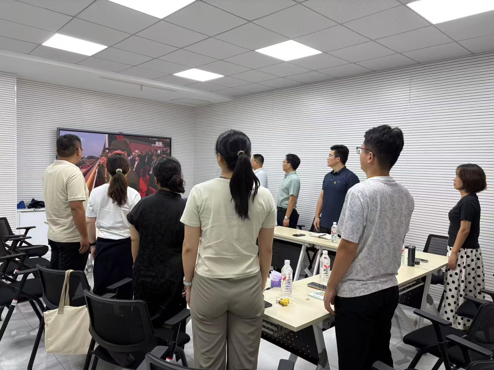 通过观看阅兵仪式,全体同志接受了一次生动的爱国主义教育。随着五星红旗冉冉升起,大家不约而同肃身起立,齐声高唱国歌,向伟大祖国致敬。整齐划一的如铜墙铁壁般的方阵列队、以雷霆万钧之势划破长空的战机编队、如钢铁洪流般的先进装备等等,都让大家深切感受到中国共产党的伟大领导是国家强盛辉煌的核心关键,全体同志的爱国热情和民族自豪感瞬间燃爆。
