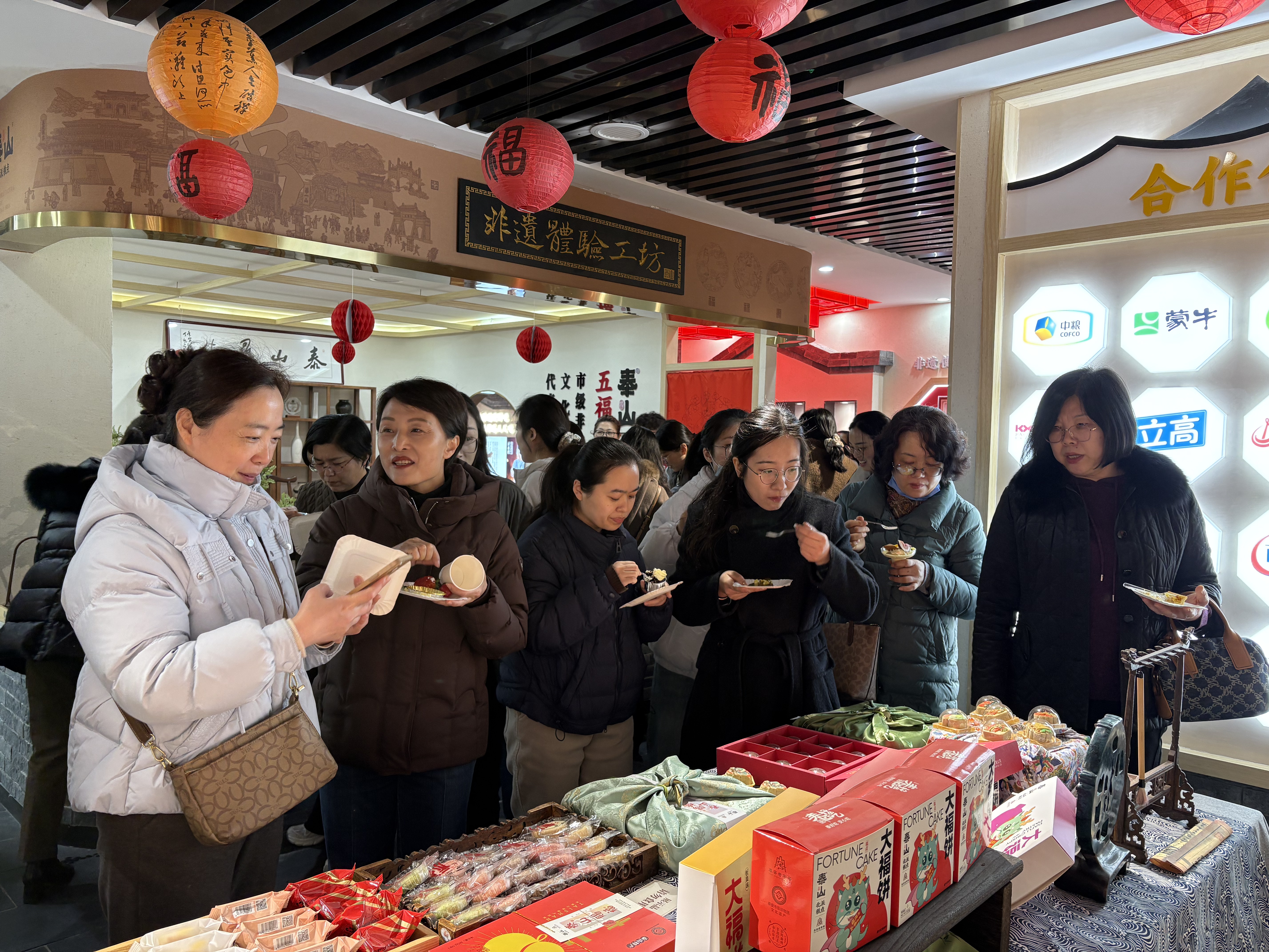 女教工们先后参观了原料储存区、标准化生产车间以及公司非遗博物馆。参观过程中,大家认真聆听工作人员对蛋糕生产流程、原料甄选标准、质量控制体系的详细讲解,近距离观察了从原料处理到成品出炉的全环节,深入了解了食品安全管控的严格要求,对现代化食品加工的规范化、精细化有了直观认识。期间,大家还品尝了工厂精心准备的各类精美糕点,在唇齿间的甜蜜中,切实感受到了传统烘焙工艺与现代食品技术的融合魅力,双方还围绕食品安全生产、非遗文化传承等话题开展了友好座谈交流,现场氛围融洽。